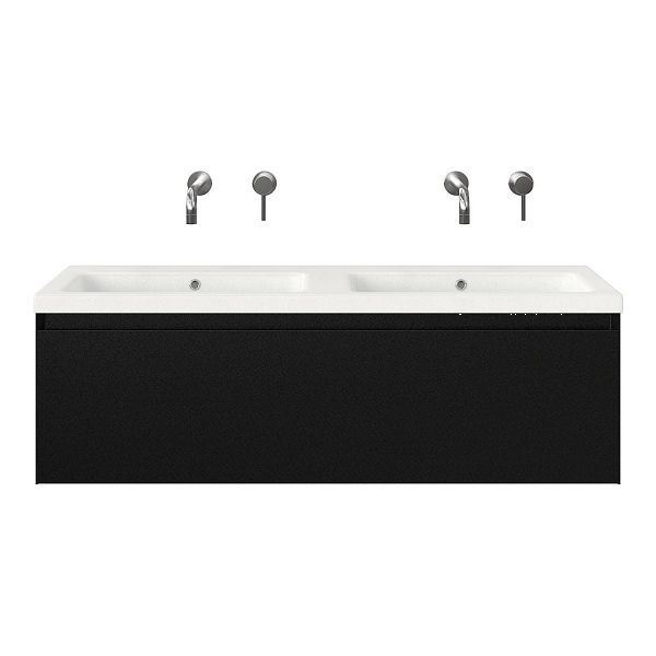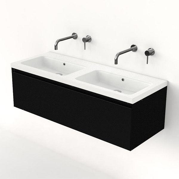 | Bellanti Solo /Amelia badmeubel 120x46 1 softclose lade zwart mat greeploos keramische wastafel dubbel wit mat zonder kraangaten |