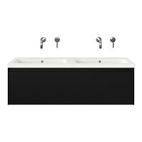 | | Bellanti Solo /Amelia badmeubel 120x46 1 softclose lade zwart mat greeploos keramische wastafel dubbel wit mat zonder kraangaten |