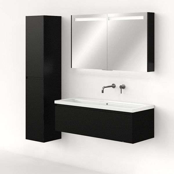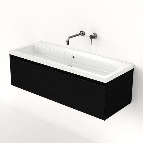 | Bellanti Solo /Amelia badmeubel 120x46 1 softclose lade zwart mat greeploos keramische wastafel wit glans zonder kraangaten |