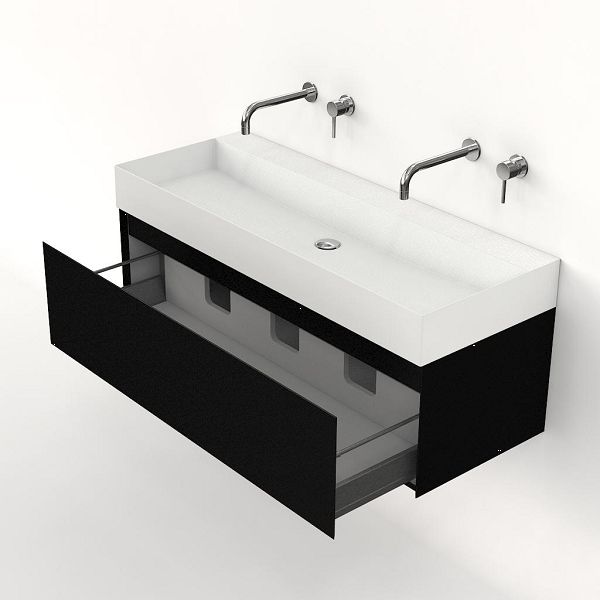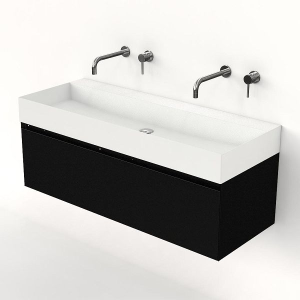 | | Bellanti Solo /Azzurra badmeubel 120x46 1 softclose lade zwart mat greeploos keramische wastafel wit mat zonder kraangaten |