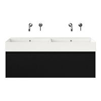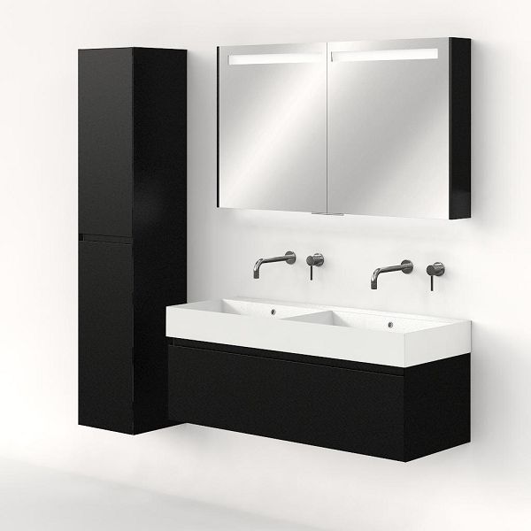 | Bellanti Solo /Azzurra badmeubel 120x46 1 softclose lade zwart mat greeploos keramische wastafel dubbel wit glans zonder kraangaten |