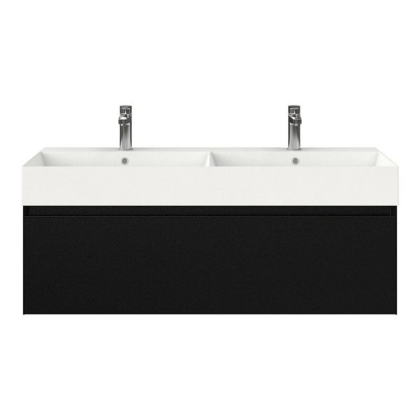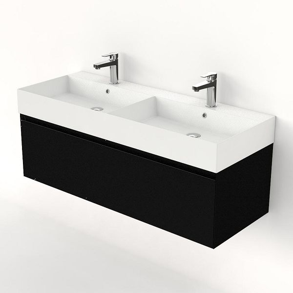 Bellanti Solo /Azzurra badmeubel 120x46 1 softclose lade zwart mat greeploos keramische wastafel dubbel wit mat met 2 kraangaten