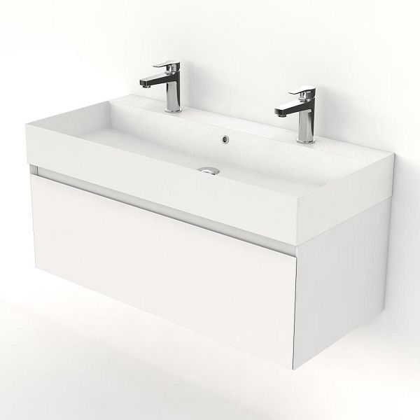 | | Bellanti Solo/Azzurra badmeubel 100x46 1 softclose lade wit hoogglans greeploos keramische wastafel wit mat met 2 kraangaten |