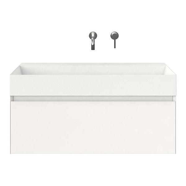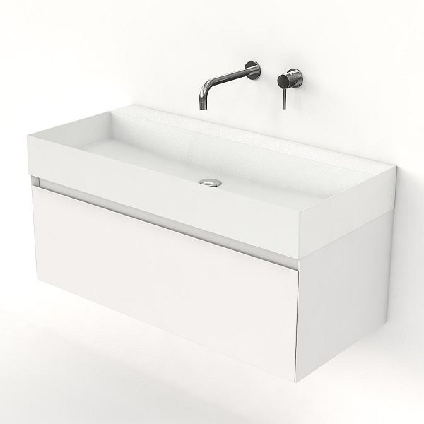 | | Bellanti Solo/Azzurra badmeubel 100x46 1 softclose lade wit hoogglans greeploos keramische wastafel wit mat zonder kraangaten |