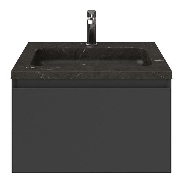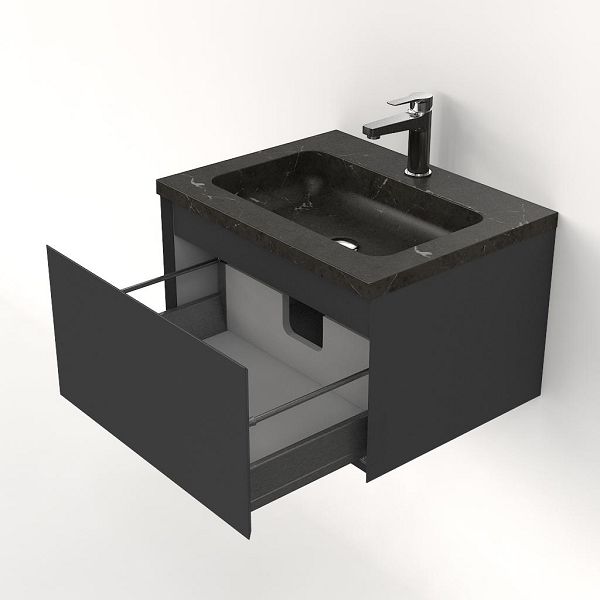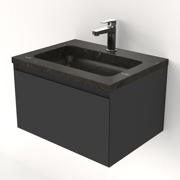 | | Bellanti Solo/Square badmeubel 60x46 1 softclose lade antraciet mat greeploos natuursteen wastafel blue stone met 1 kraangat |