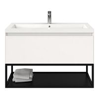 | | Bellanti Solo/Tela/Esta badmeubel 100x46 1 softclose lade wit hoogglans greeploos polystone wastafel wit met 1 kraangat met mat zwart metalen frame |