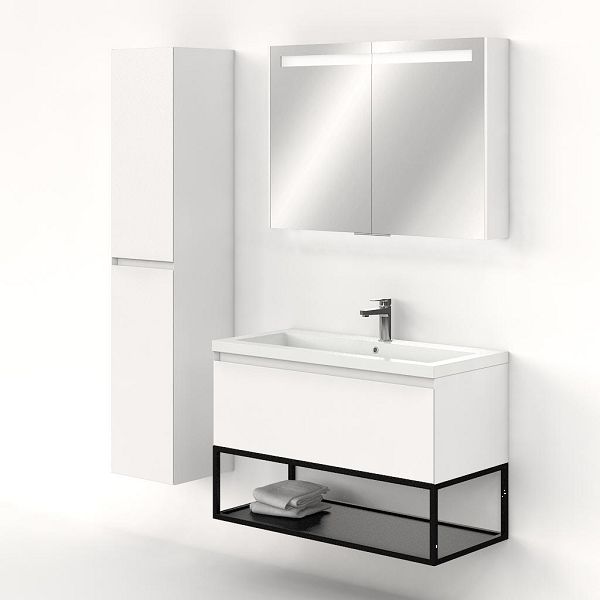 | | Bellanti Solo/Tela/Esta badmeubel 100x46 1 softclose lade wit mat greeploos polystone wastafel wit met 1 kraangat met mat zwart metalen frame |