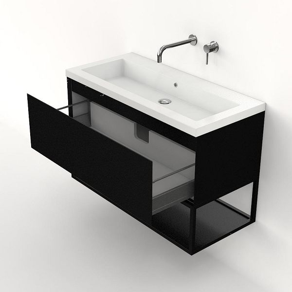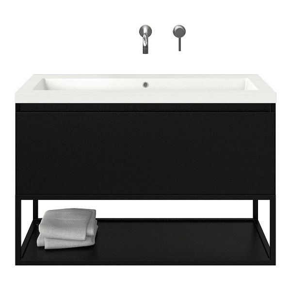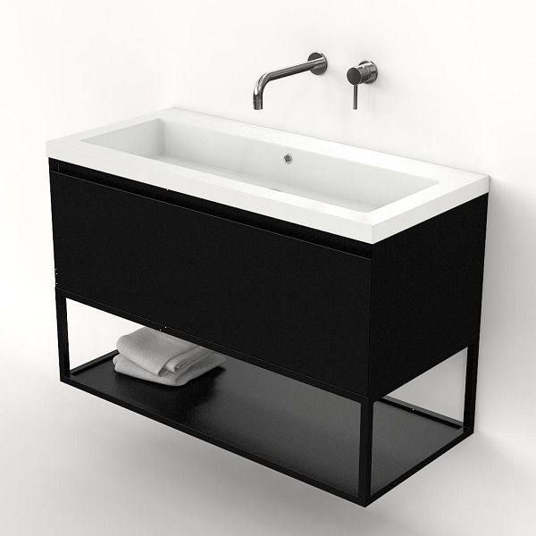 Bellanti Solo/Tela/Esta badmeubel 100x46 1 softclose lade zwart mat greeploos polystone wastafel wit zonder kraangaten met mat zwart metalen frame