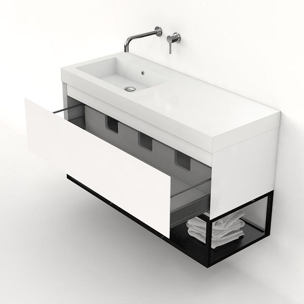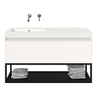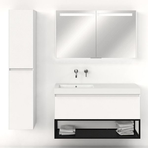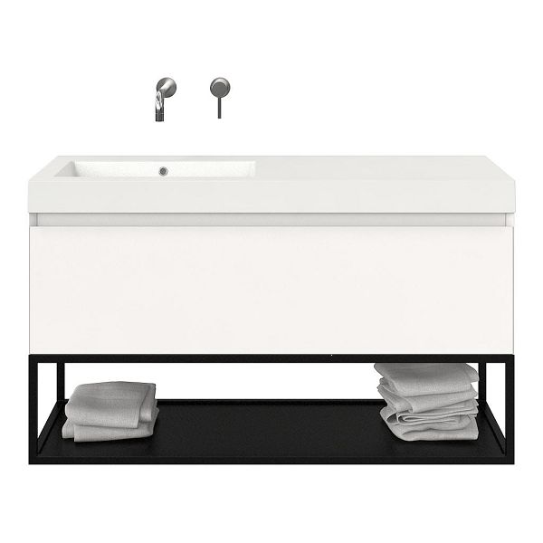 | | Bellanti Solo/Tela/Esta badmeubel 120x46 1 softclose lade wit mat greeploos polystone wastafel wit zonder kraangaten met mat zwart metalen frame |