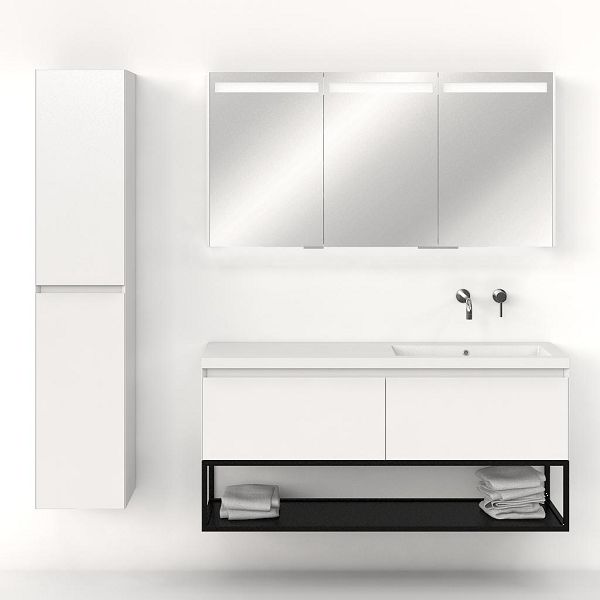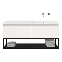 | | Bellanti Solo/Tela/Esta badmeubel 140x46 2 softclose laden wit hoogglans greeploos polystone wastafel wit zonder kraangaten met mat zwart metalen frame |