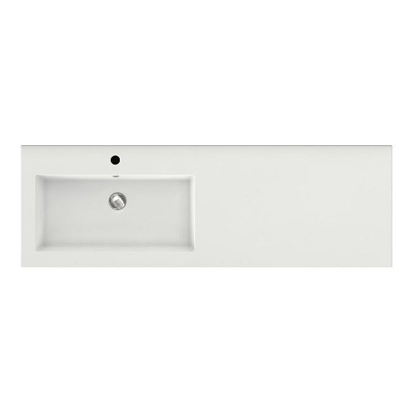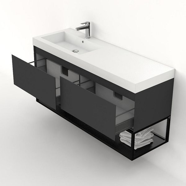 Greeploos badkamermeubel in de kleur antraciet mat is 140 cm breed. De wastafel is vervaardig in polystone en heeft de kleur wit. Dit badkamermeubel met deze wastafel is leverbaar tussen de 60 cm t/m 160 cm