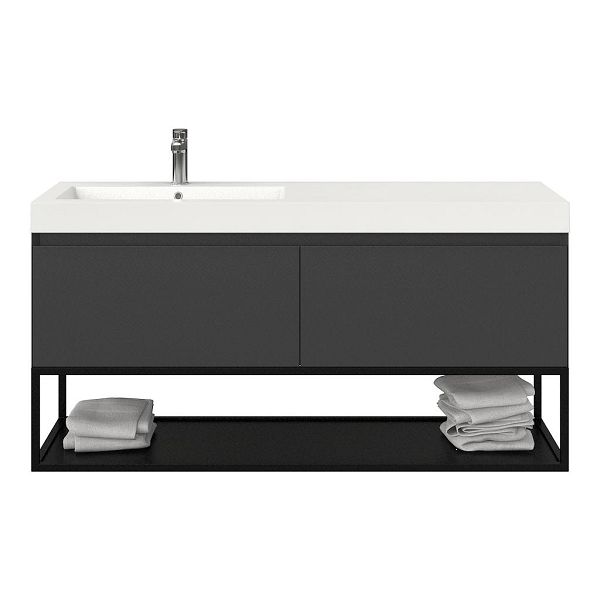 | | Bellanti Solo/Tela/Esta badmeubel 140x46 2 softclose laden antraciet mat greeploos polystone wastafel wit met 1 kraangat met mat zwart metalen frame |
