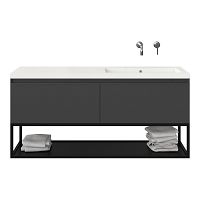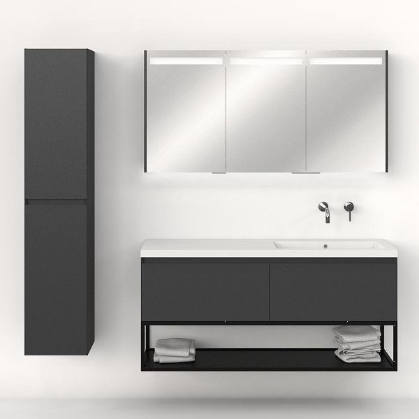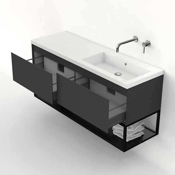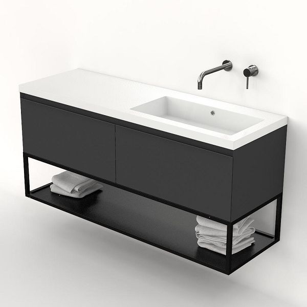 Bellanti Solo/Tela/Esta badmeubel 140x46 2 softclose laden antraciet mat greeploos polystone wastafel wit zonder kraangaten met mat zwart metalen frame