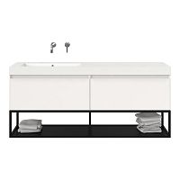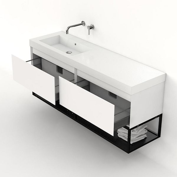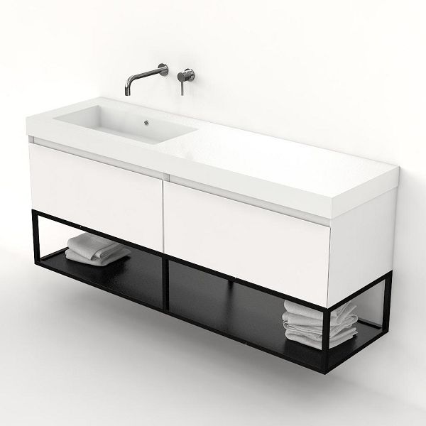 Bellanti Solo/Tela/Esta badmeubel 160x46 2 softclose laden hoogglans wit greeploos polystone enkele wastafel links zonder kraangat met mat zwart metalen frame