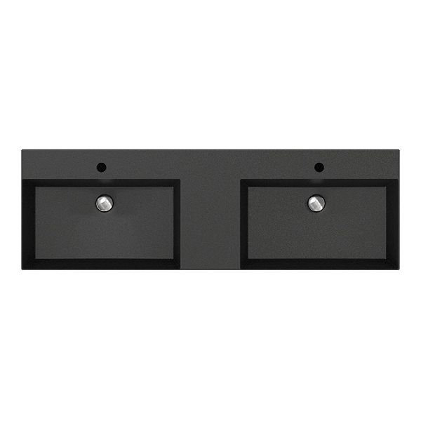 Greeploos badkamermeubel in de kleur wit hoogglans is 140 cm breed. De wastafel is vervaardig in keramiek en heeft de kleur antraciet mat keramiek. Dit badkamermeubel met deze wastafel is leverbaar tussen de 60 cm t/m 140 cm