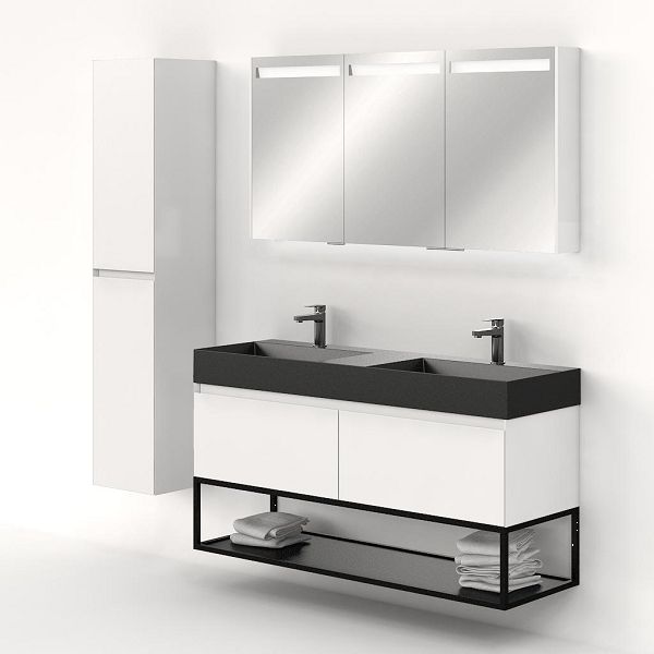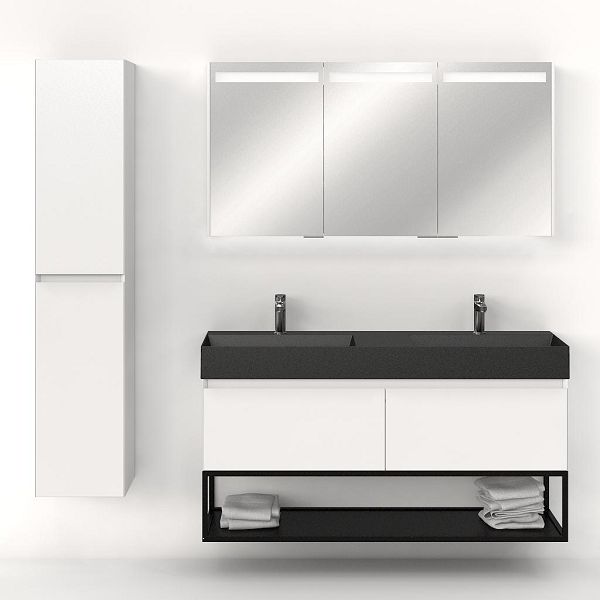 | | Bellanti Solo/Tela/Azzurra badmeubel 140x46 2 softclose laden wit hoogglans greeploos keramische wastafel dubbel antraciet mat met 2 kraangaten met mat zwart metalen frame |