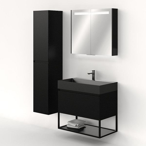 Bellanti Solo/Tela/Azzurra badmeubel 80x46 1 softclose lade zwart mat greeploos keramische wastafel antraciet mat met 1 kraangat met mat zwart metalen frame