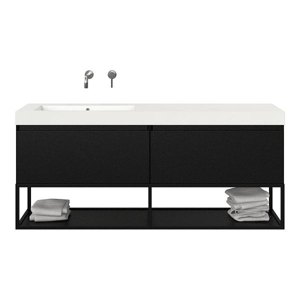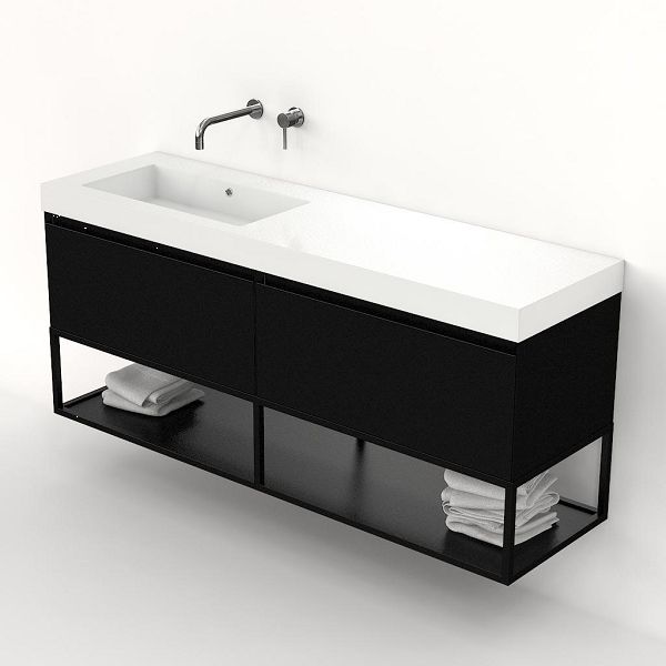 | | Bellanti Solo/Tela/Esta badmeubel 160x46 2 softclose laden mat zwart greeploos polystone enkele wastafel links zonder kraangat met mat zwart metalen frame |