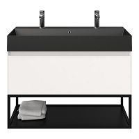 | | Bellanti Solo/Tela/Azzurra badmeubel 100x46 1 softclose lade wit hoogglans greeploos keramische wastafel antraciet mat met 2 kraangaten met mat zwart metalen frame |