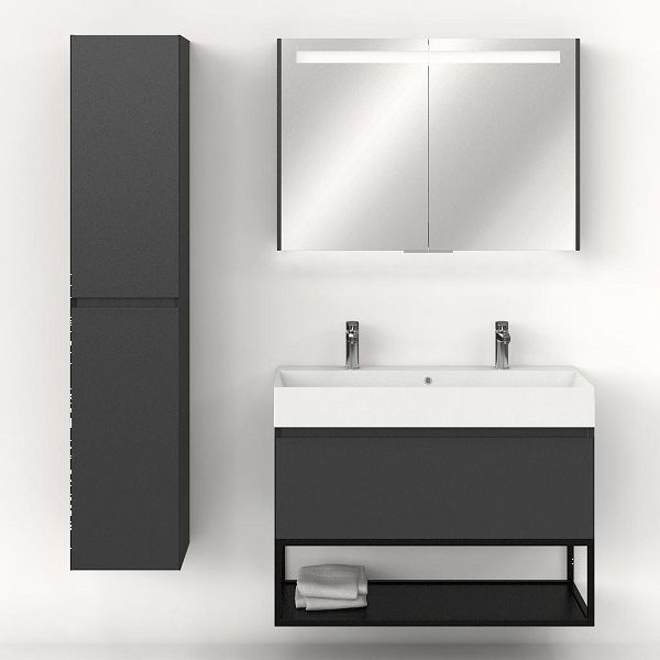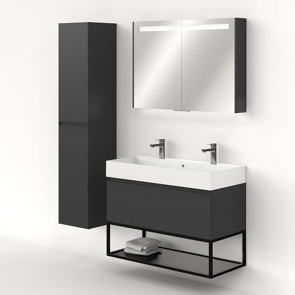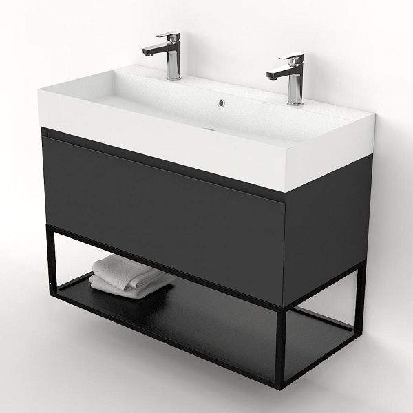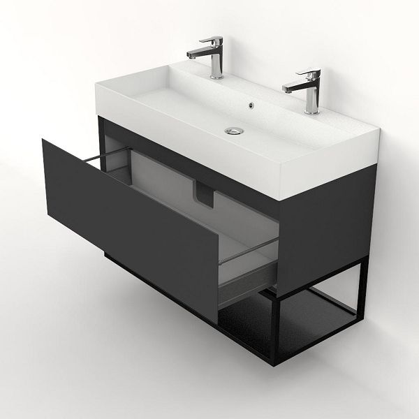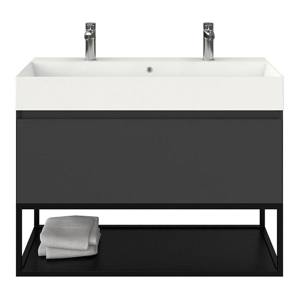 | | Bellanti Solo/Tela/Azzurra badmeubel 100x46 1 softclose lade antraciet mat greeploos keramische wastafel wit mat met 2 kraangaten met mat zwart metalen frame |