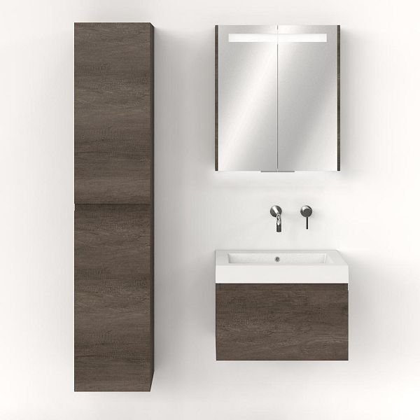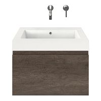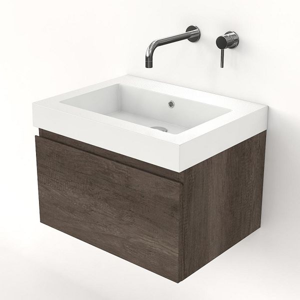 Greeploos badkamermeubel in de kleur olm donker grijs is 60 cm breed. De wastafel is vervaardig in polystone en heeft de kleur wit. Dit badkamermeubel met deze wastafel is leverbaar tussen de 60 cm t/m 160 cm