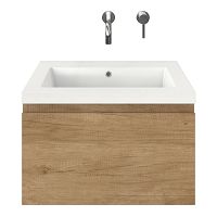 Greeploos badkamermeubel in de kleur olm is 60 cm breed. De wastafel is vervaardig in polystone en heeft de kleur wit. Dit badkamermeubel met deze wastafel is leverbaar tussen de 60 cm t/m 160 cm