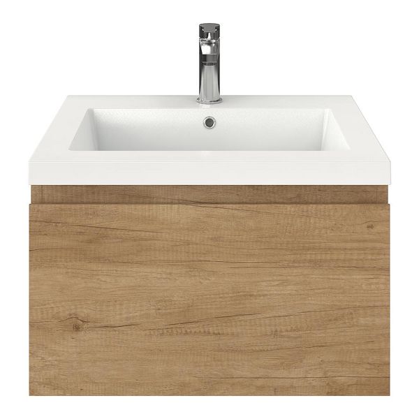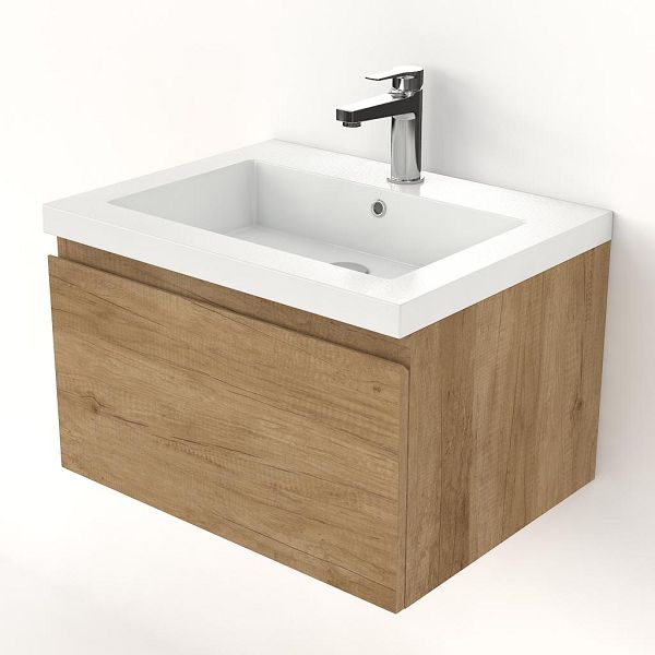 Greeploos badkamermeubel in de kleur olm is 60 cm breed. De wastafel is vervaardig in polystone en heeft de kleur wit. Dit badkamermeubel met deze wastafel is leverbaar tussen de 60 cm t/m 160 cm