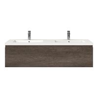 | | Bellanti Solo/Esta badmeubel 140x46 2 softclose laden olm donker grijs greeploos polystone wastafel dubbel wit met 2 kraangaten |