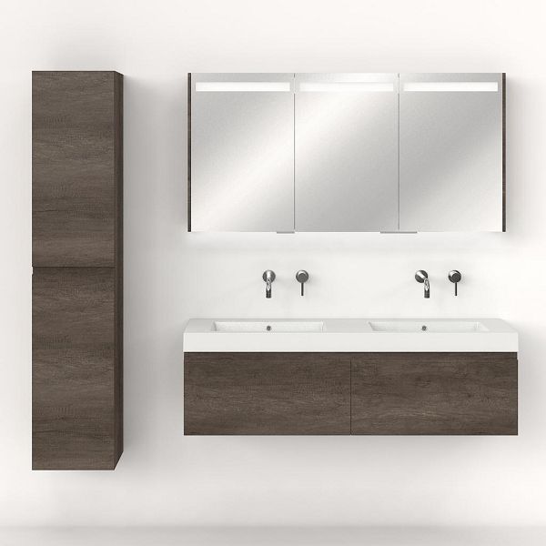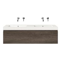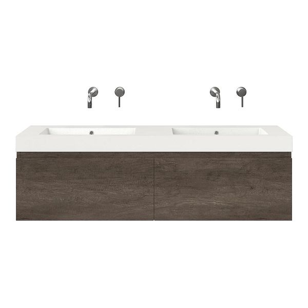 Greeploos badkamermeubel in de kleur olm donker grijs is 140 cm breed. De wastafel is vervaardig in polystone en heeft de kleur wit. Dit badkamermeubel met deze wastafel is leverbaar tussen de 60 cm t/m 160 cm