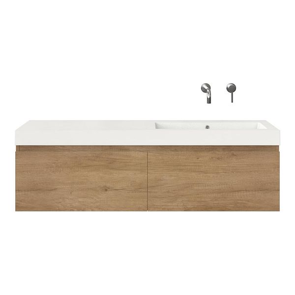 Greeploos badkamermeubel in de kleur olm is 140 cm breed.  De wastafel is vervaardig in polystone en heeft de kleur wit. Dit badkamermeubel met deze wastafel is leverbaar tussen de 60 cm t/m 160 cm