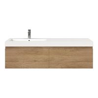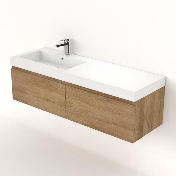 Greeploos badkamermeubel in de kleur olm is 140 cm breed. De wastafel is vervaardig in polystone en heeft de kleur wit. Dit badkamermeubel met deze wastafel is leverbaar tussen de 60 cm t/m 160 cm