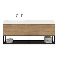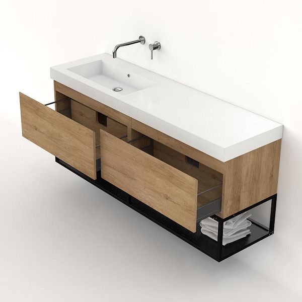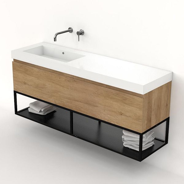 | Bellanti Solo/Tela/Esta badmeubel 160x46 2 softclose laden olm greeploos polystone enkele wastafel links wit zonder kraangat met mat zwart metalen frame |