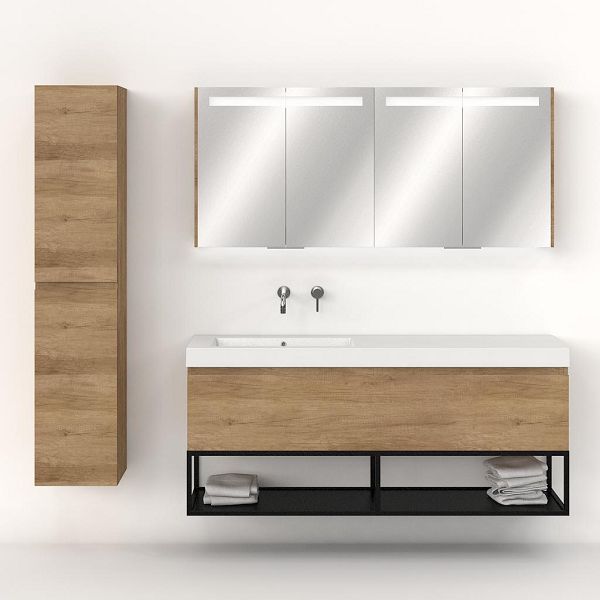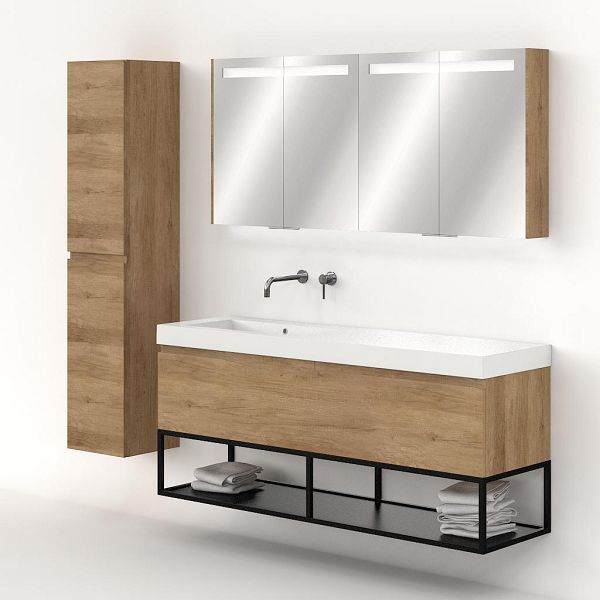 Greeploos badkamermeubel in de kleur olm is 160 cm breed. De wastafel is vervaardig in polystone en heeft de kleur wit. Dit badkamermeubel met deze wastafel is leverbaar tussen de 60 cm t/m 160 cm