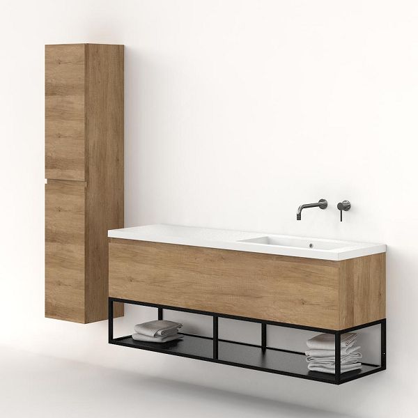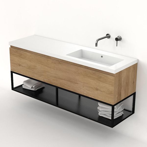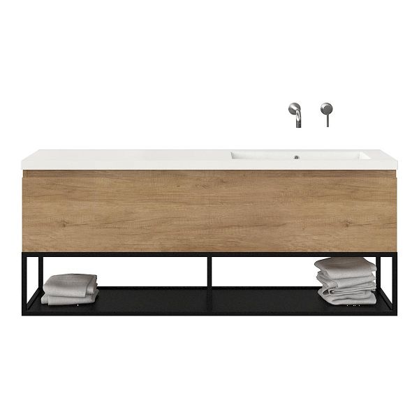 | | Bellanti Solo/Tela/Esta badmeubel 160x46 2 softclose laden olm greeploos polystone enkele wastafel rechts wit zonder kraangat met mat zwart metalen frame |