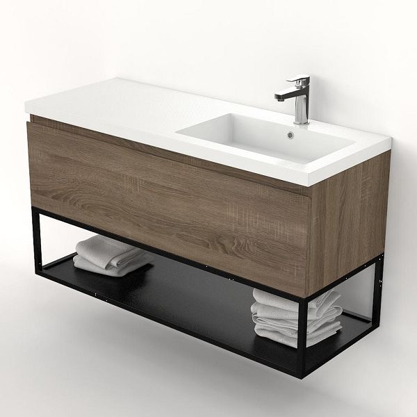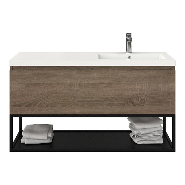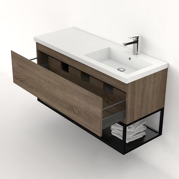 Bellanti Solo/Tela/Esta badmeubel 120x46 1 softclose lade eiken donker greeploos polystone wastafel wit met 1 kraangat met mat zwart metalen frame