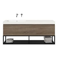Bellanti Solo/Tela/Esta badmeubel 160x46 2 softclose laden eiken donker greeploos polystone enkele wastafel links wit zonder kraangat met mat zwart metalen frame