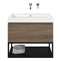 | Bellanti Solo/Tela/Esta badmeubel 80x46 1 softclose lade eiken donker greeploos polystone wastafel wit zonder kraangaten met mat zwart metalen frame |