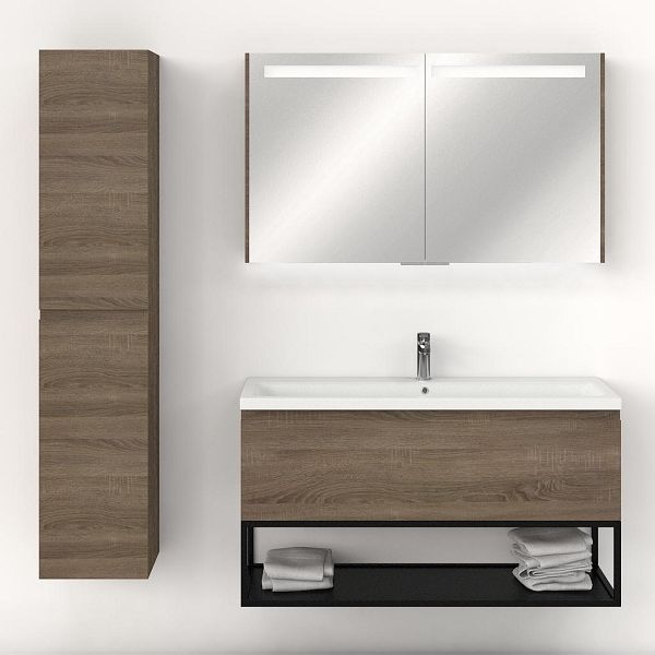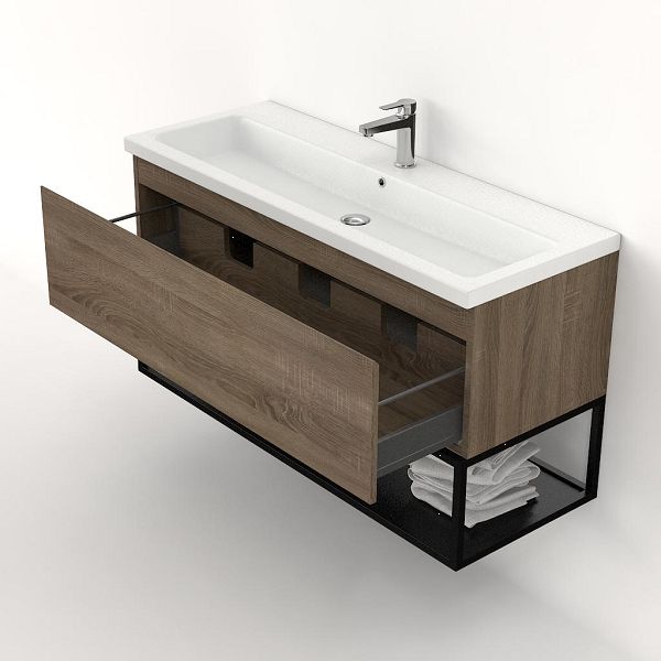 | | Bellanti Solo/Tela /Amelia badmeubel 120x46 1 softclose lade eiken donker greeploos keramische wastafel wit mat met 1 kraangat met mat zwart metalen frame |