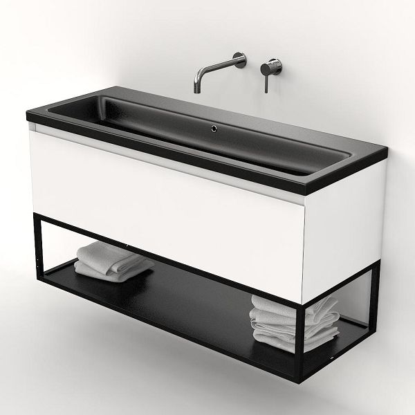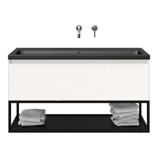 | | Bellanti Solo/Tela /Amelia badmeubel 120x46 1 softclose lade wit mat greeploos keramische wastafel zwart mat zonder kraangaten met mat zwart metalen frame |