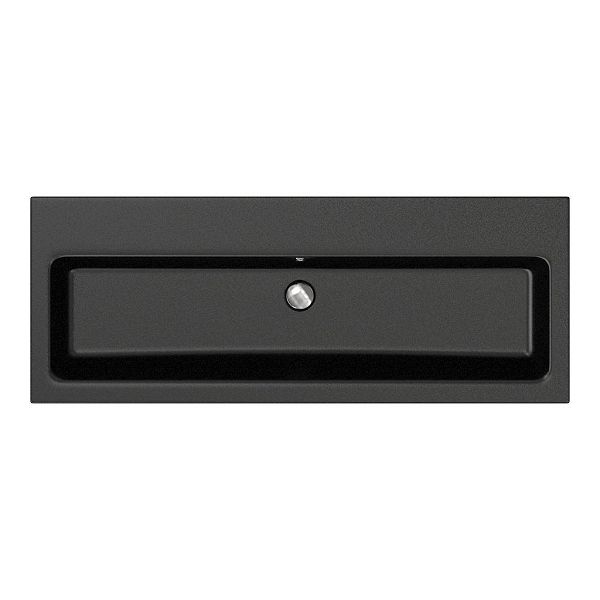 Greeploos badkamermeubel in de kleur wit mat is 120 cm breed. De wastafel is vervaardig in keramiek en heeft de kleur zwart mat keramiek. Dit badkamermeubel met deze wastafel is leverbaar tussen de 60 cm t/m 140 cm