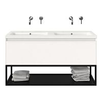 | | Bellanti Solo/Tela/Amelia badmeubel 120x46 1 softclose lade wit mat greeploos keramische wastafel dubbel wit glans zonder kraangaten met mat zwart metalen frame |