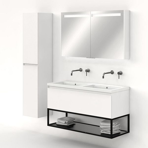 | Bellanti Solo/Tela/Amelia badmeubel 120x46 1 softclose lade wit mat greeploos keramische wastafel dubbel wit glans zonder kraangaten met mat zwart metalen frame |