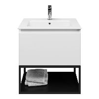 | Bellanti Solo/Tela/Etna badmeubel 60x46 1 softclose lade wit hoogglans greeploos keramische wastafel wit met 1 kraangat met mat zwart metalen frame |