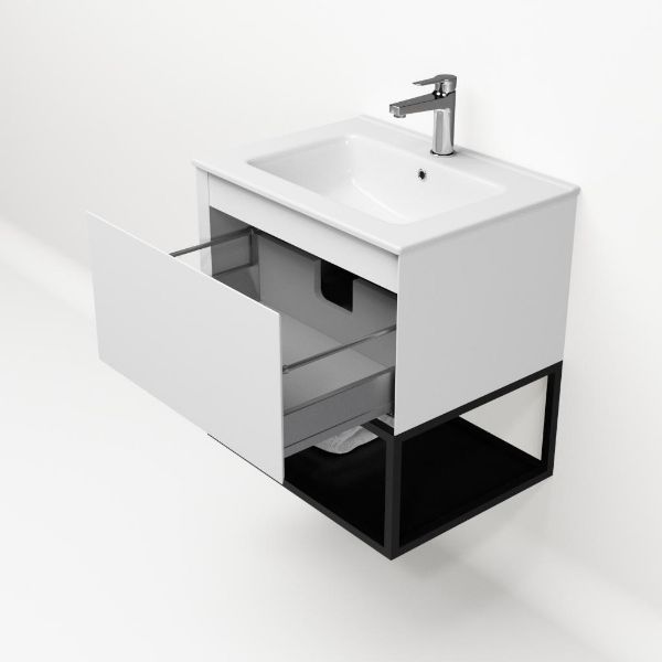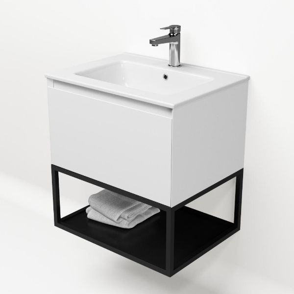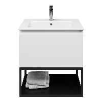 | | Bellanti Solo/Tela/Etna badmeubel 60x46 1 softclose lade wit mat greeploos keramische wastafel wit met 1 kraangat met mat zwart metalen frame |