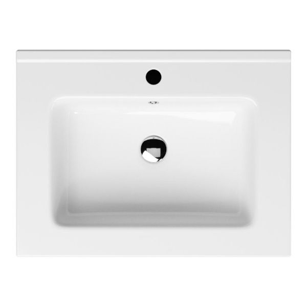 Greeploos badkamermeubel in de kleur wit mat is 60 cm breed. De wastafel is vervaardig in keramiek en heeft de kleur wit keramiek. Dit badkamermeubel met deze wastafel is leverbaar tussen de 60 cm t/m 120 cm