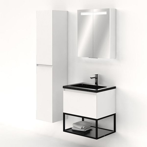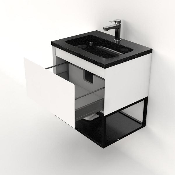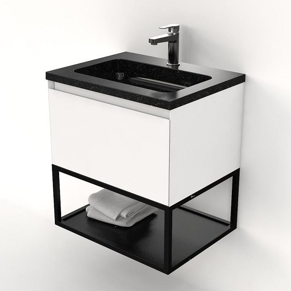 | | Bellanti Solo/Tela/Square badmeubel 60x46 1 softclose lade wit mat greeploos natuursteen wastafel shanxi black met 1 kraangat met mat zwart metalen frame |
