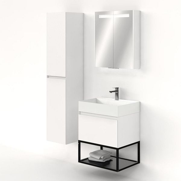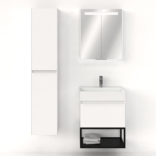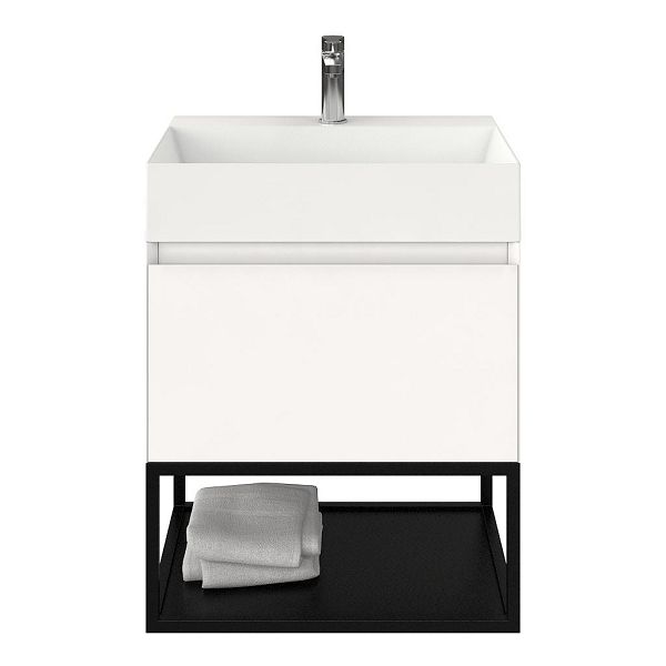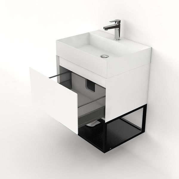 | | Bellanti Solo/Tela/Azzurra badmeubel 60x46 1 softclose lade wit mat greeploos keramische wastafel wit glans met 1 kraangat met mat zwart metalen frame |