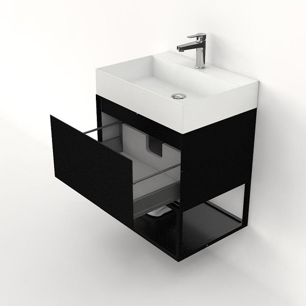 | Bellanti Solo/Tela/Azzurra badmeubel 60x46 1 softclose lade zwart mat greeploos keramische wastafel wit mat met 1 kraangat met mat zwart metalen frame |