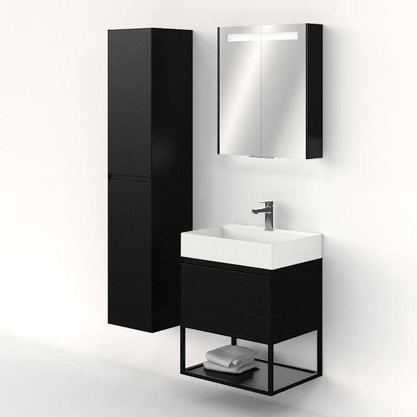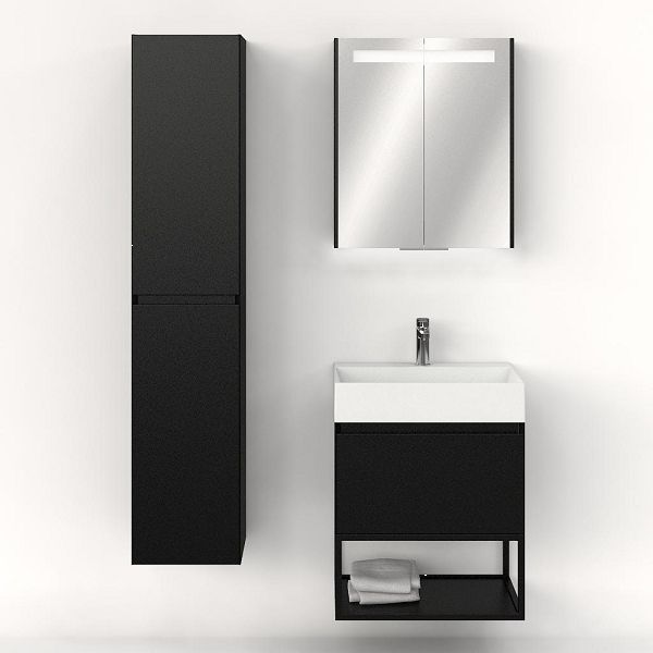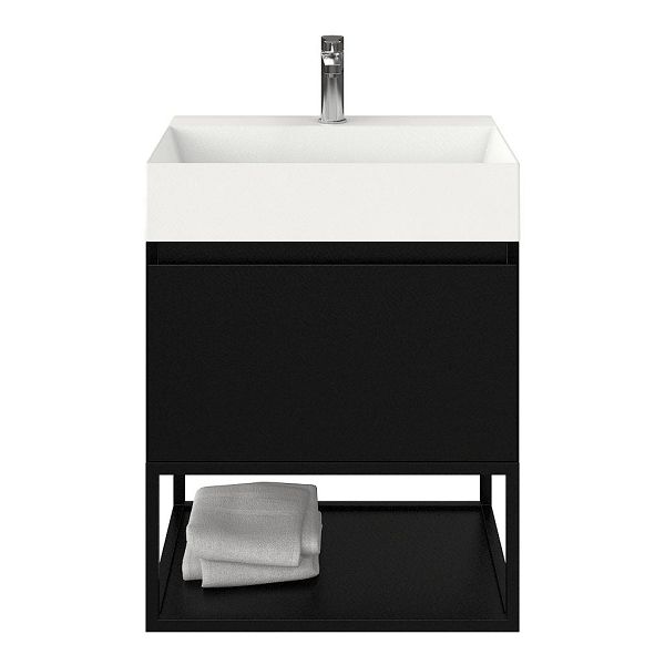 | | Bellanti Solo/Tela/Azzurra badmeubel 60x46 1 softclose lade zwart mat greeploos keramische wastafel wit mat met 1 kraangat met mat zwart metalen frame |