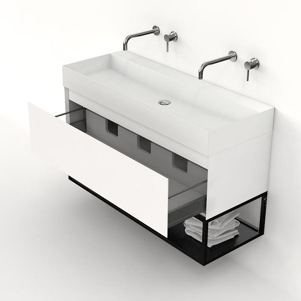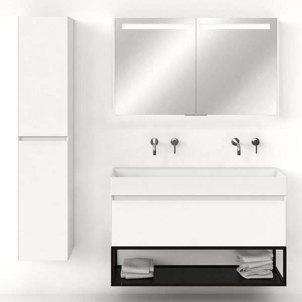 | | Bellanti Solo/Tela /Azzurra badmeubel 120x46 1 softclose lade wit mat greeploos keramische wastafel wit glans zonder kraangaten met mat zwart metalen frame |